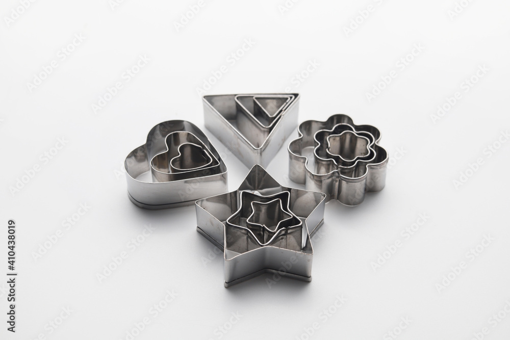 Various shape of baking molds isolated on white background