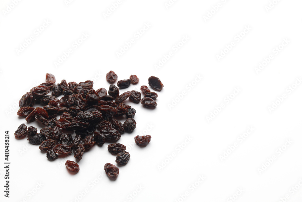 Raisins isolated on white background. Raisins are a type of grape that has been dried for around three weeks.