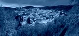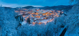 Stunning scenic view of beautiful cityscape of medieval Loket nad Ohri town with Loket Castle gothic style on massive rock, colorful buildings during winter season, Karlovy Vary Region, Czech Republic