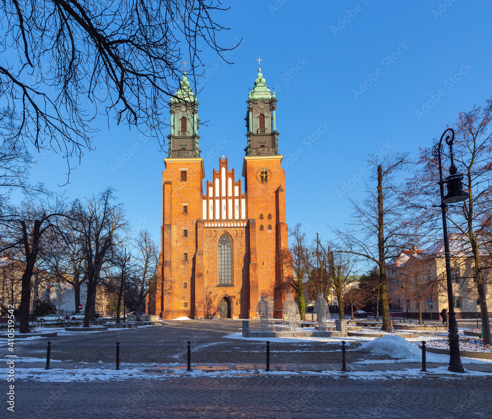Poznan. Cathedral on Tumskiy Island on a sunny day.