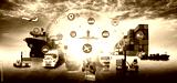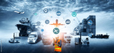 Distribution of logistics networks on industrial freight planes for fast delivery or online ordering. The concept of modern life, business, city life and internet of things