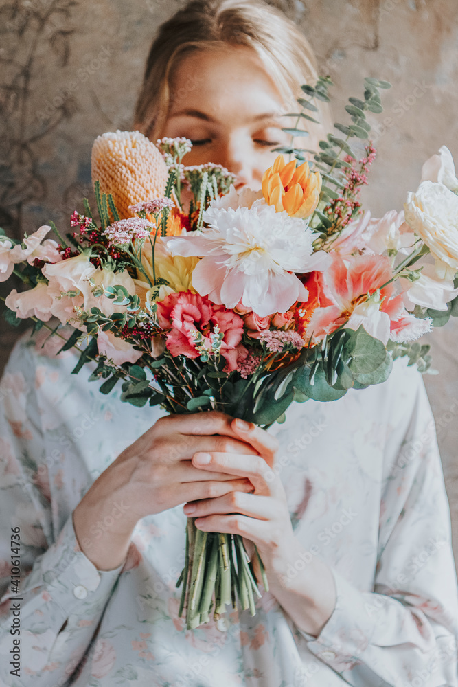 Blonde girl with flowers