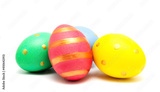Colorful perfect handmade painted easter eggs isolated on a white background