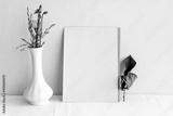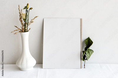 Vintage postcard blank - copy space on a white map and dry ornamental plants.
