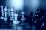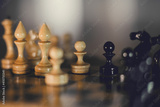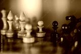 Wooden chess pieces on the chessboard.