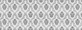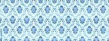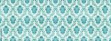 Old retro antique vintage rough turquoise white wallpaper texture background banner panorama, with seamless pineapple, flower and leaf print motive