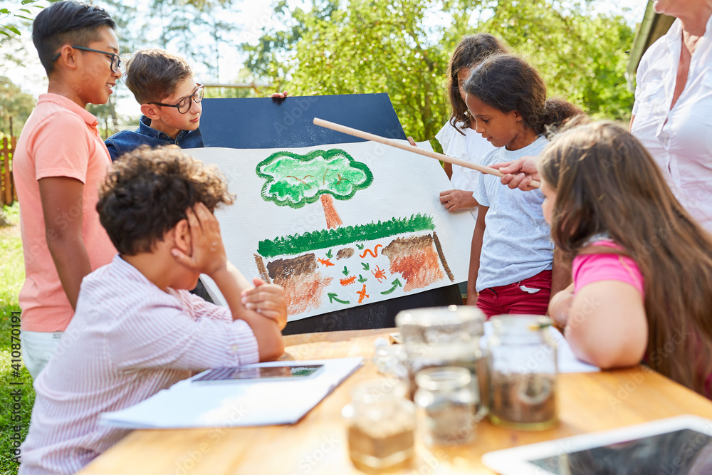 Kinder im Nachhilfe Ferienkurs lernen über Biologie