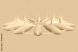 3D rendering of whales formed by geometrical figures on a pink background - climate change concept