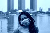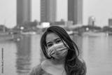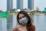 Shallow focus shot of an Asian female wearing a protective mask to prevent the spread of viruses