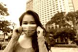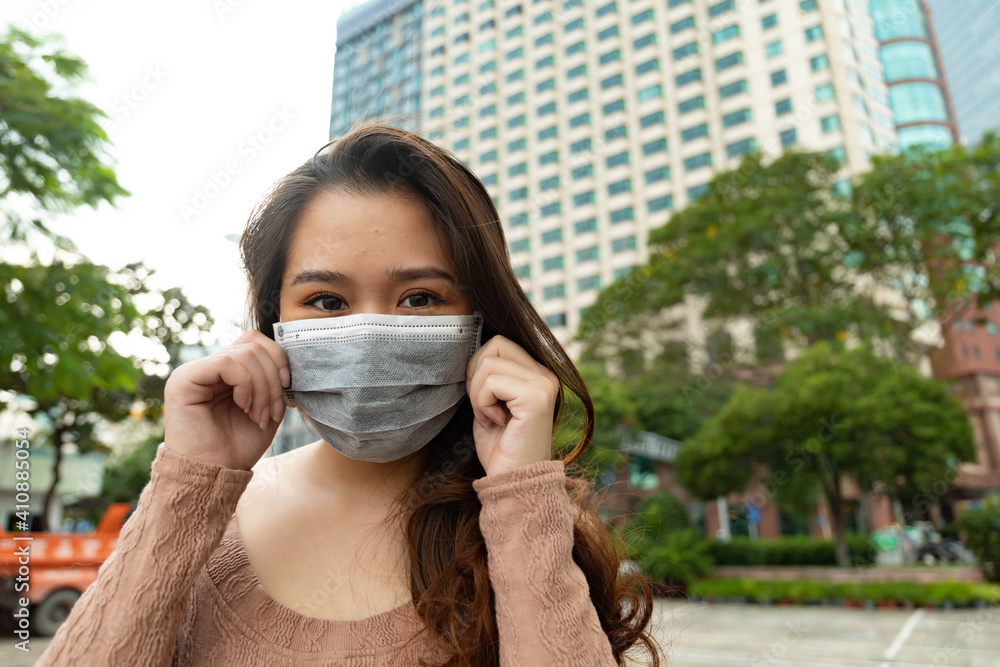 Shallow focus shot of an Asian female wearing a protective mask to prevent the spread of viruses