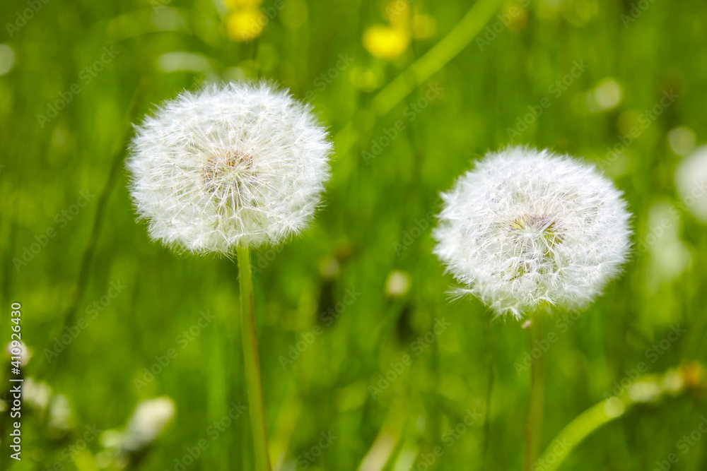 Beautiful close-up of a dandelion meadow in spring.