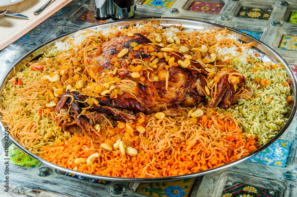 Whole mutton leg with mixed rice.Arabic food