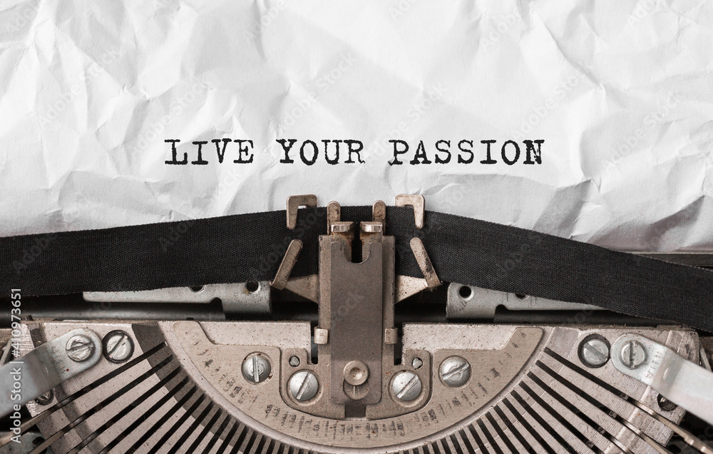 Text LIVE YOUR PASSION typed on retro typewriter