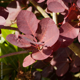 Cotinus coggygria 'Royal purple' ou Arbre à perruques au feuillage arrondi et oval pourpre violacé marginé de rouge