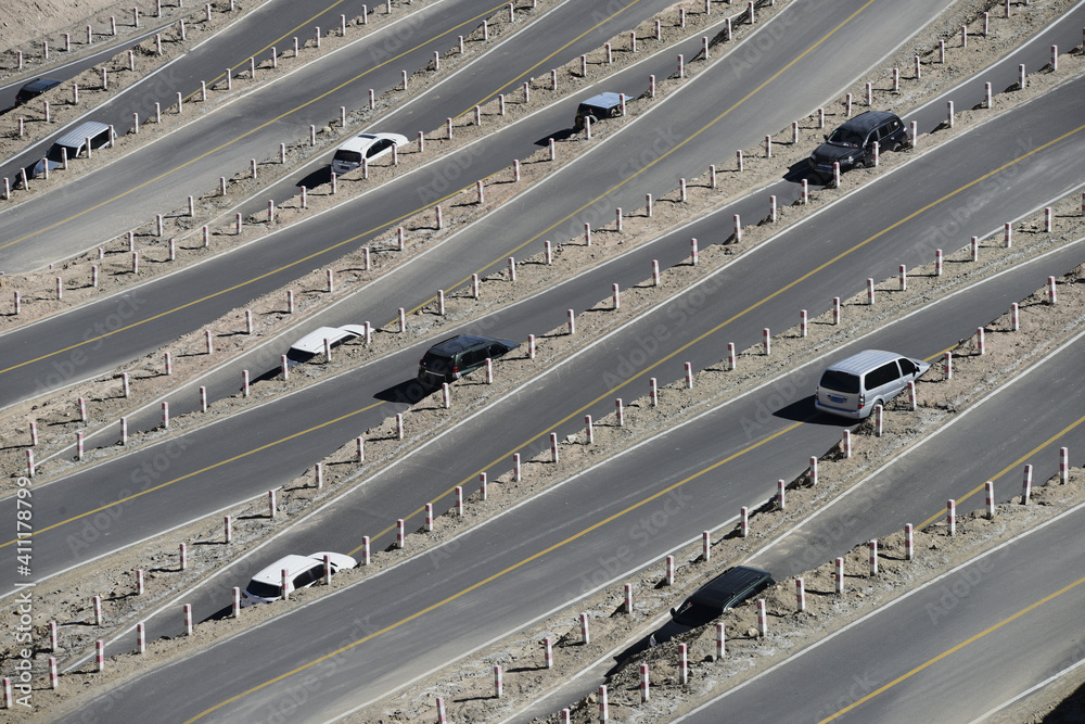 view of the attraction named "Pan Long Ancient Road" in Tashkurgan, Xinjiang, China. It is famous for its many curves. It is famous for its many curves