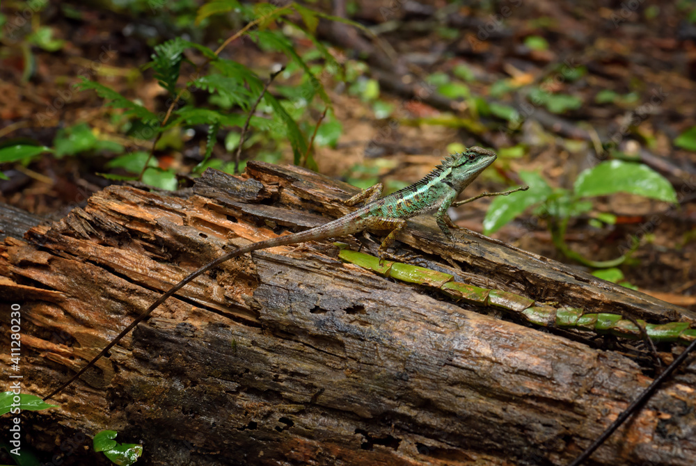 Emma Gray's Forest Lizard - Calotes emma, beautiful colored lizard from Southeast Asian forests, Thailand.