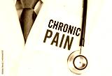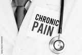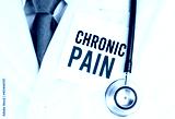White sticker with text Chronic Pain lying on medical robe with a stethoscope