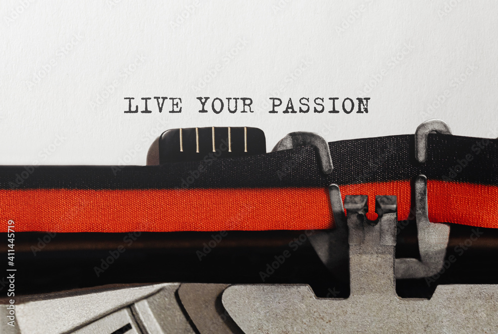 Text LIVE YOUR PASSION typed on retro typewriter