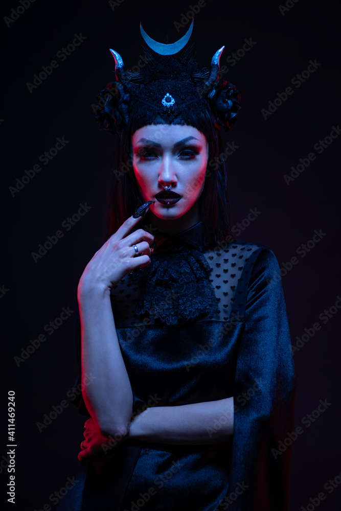Portrait of gothic woman in balck clothes