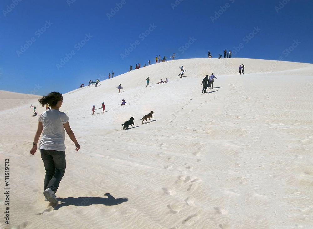 Lancelin Dunes sandboarding, climbing up the sand dunes, Perth, Western Australia