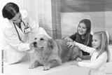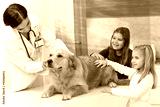 Little girls and dog at pets' clinic
