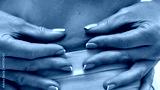 Woman in lingerie showing crumpled skin on waistline