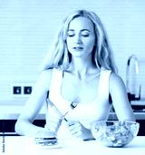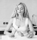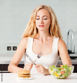 Woman chooses between a healthy and unhealthy food