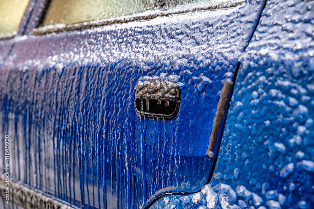 Car covered by frozen rain