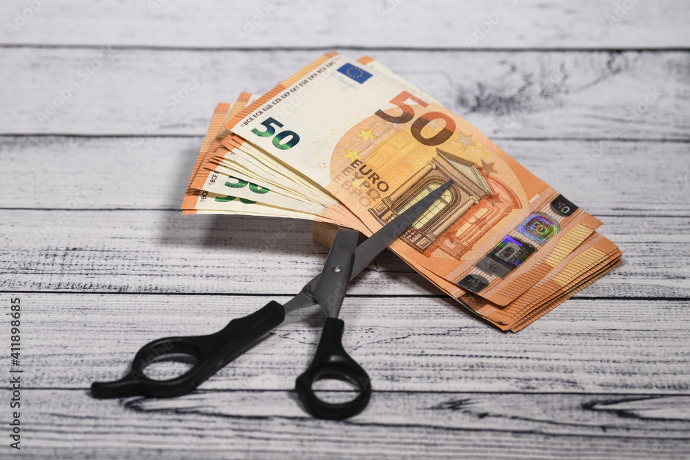 Argent euro dollar change echange banque monnaie ciseaux coiffeur