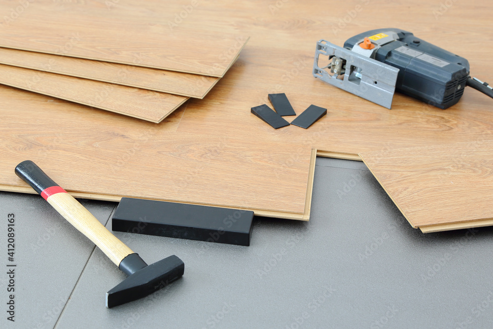 Laminate on a gray base and accessories for its installation