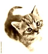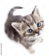 little baby kitten looking upwards top view