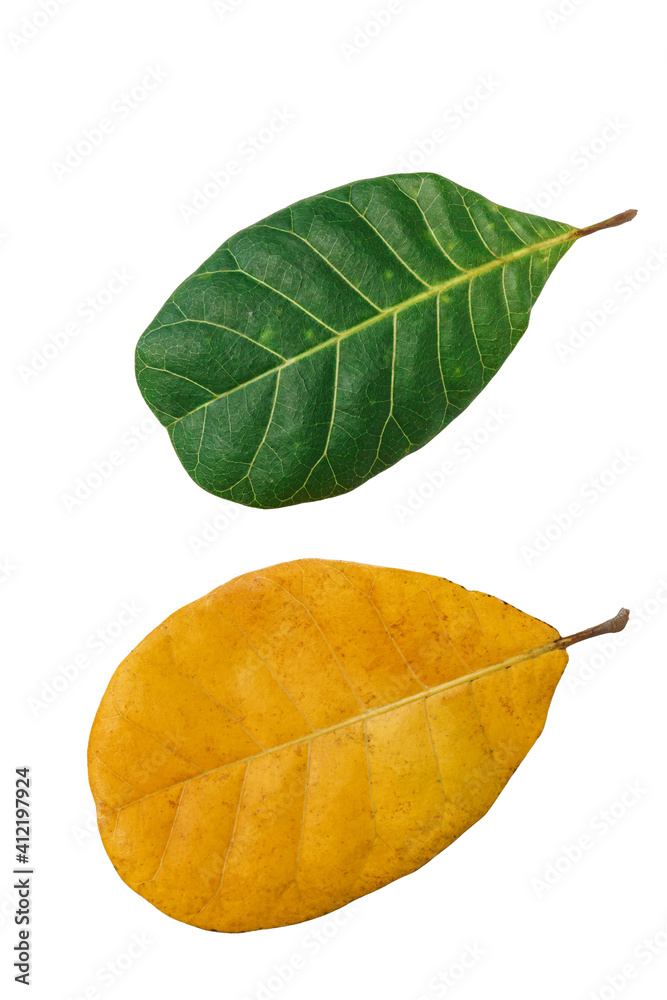 Green leaf and yellow isolated on a white background