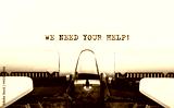 Text We Need Your Help typed on retro typewriter