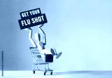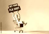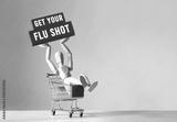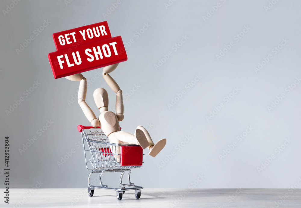 Wooden man hold a red wooden block with word Get your flu shot ,concept