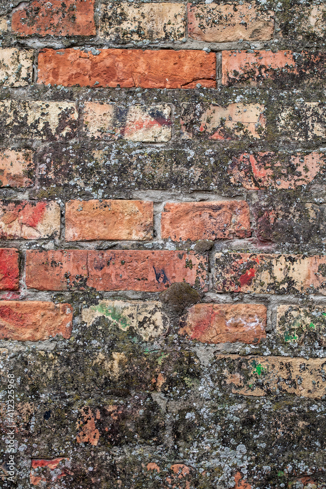 Rustic old red brick wall with concrete textured facade background