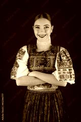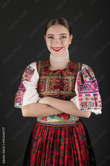 Young beautiful slovak woman in traditional dress. Slovak folklore