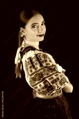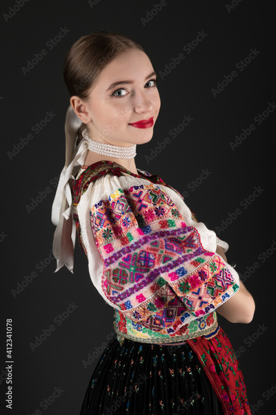 Young beautiful slovak woman in traditional dress. Slovak folklore