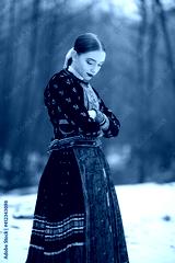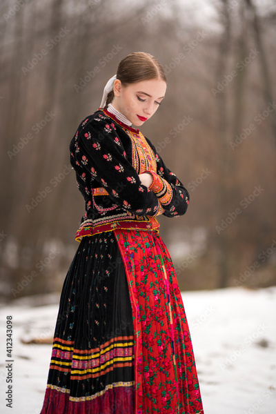 Young beautiful slovak woman in traditional dress. Slovak folklore