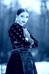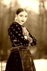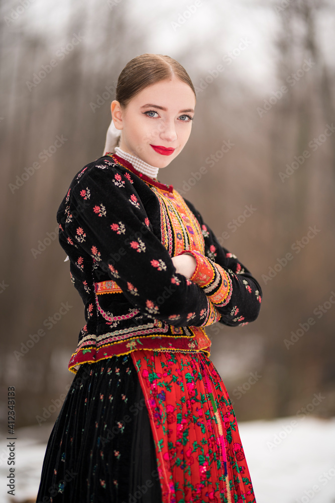 Young beautiful slovak woman in traditional dress. Slovak folklore