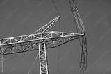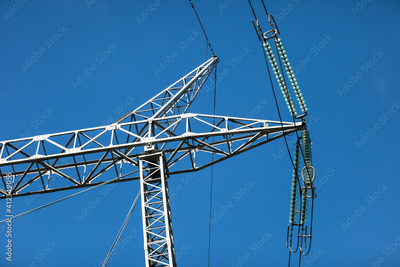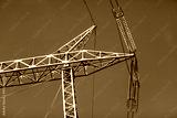 Low angle shot of overhead high-voltage power lines