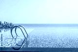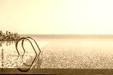 Umbrella and chair around outdoor swimming pool in hotel resort