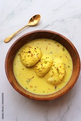Rasmalai, Rossomalai, Roshmolai, Rasamalei is a very popular Indian dessert. It's a Similar dish to Rasgulla. It is a sweet delicacy made with Indian cottage cheese or chenna. Copy space.