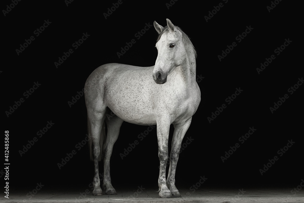 Portrait horse black background