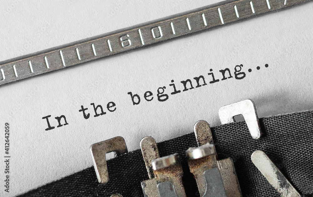 Text In the beginning typed on retro typewriter