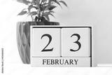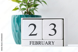 Text - February 23. White calendar with date 23 February. Russian holiday defender of the fatherland day. Men's holiday.
