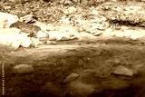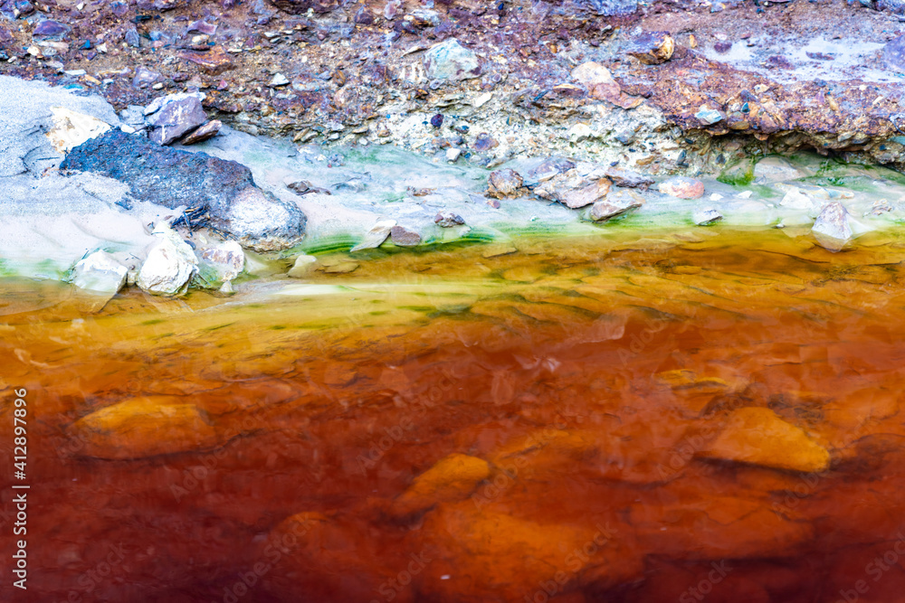 orange red river with iron ore and copper ore deposits in the Rio Tinto mining area