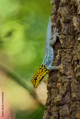 Dwarf yellow-headed gecko - Lygodactylus luteopicturatus, beautiful colored lizard from East African woodlands and forests, Zanzibar, Tanzania.