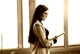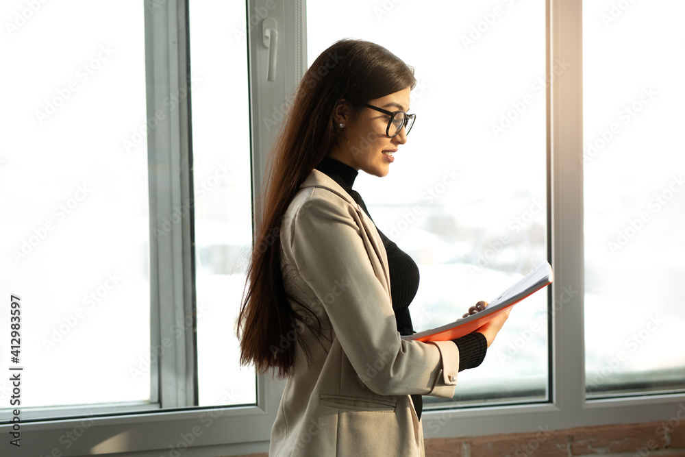 beautiful young woman in suit at office