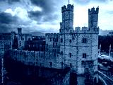Aerial view of Caernarfon Castle, a medieval fortress in Caernarfon, Gwynedd, north-west Wales