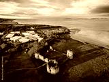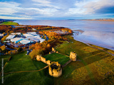 Aerial view of ruins of Flint castle in Flintshire, Wales, lying on the estuary of the River Dee